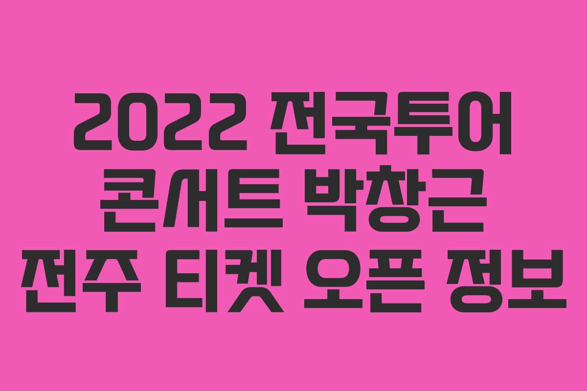 2022 전국투어 콘서트 박창근 전주 티켓은 인터파크 티켓에서 단독으로 판매됩니다. 공식 판매처를 통해서만 예매가 가능하니 주의하시기 바랍니다.