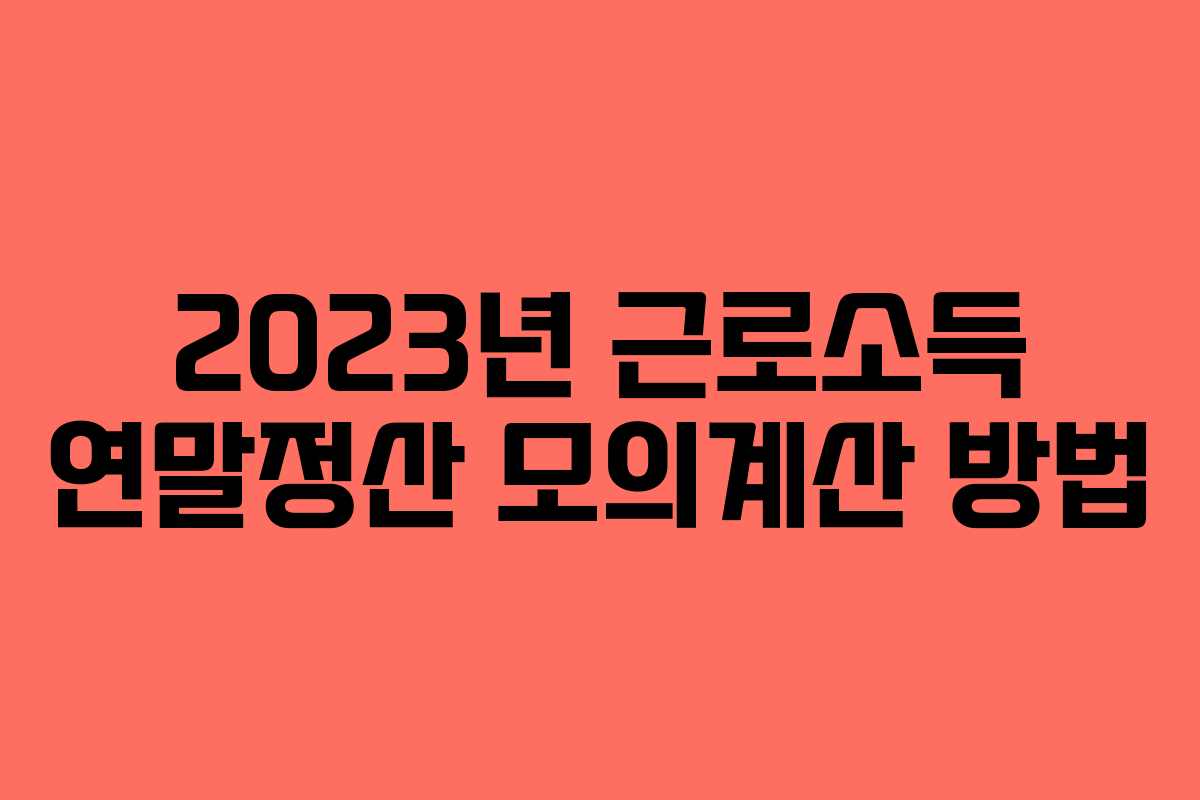 2023년 근로소득 연말정산을 준비하는 데 도움이 되는 모의계산 방법을 소개합니다. 국세청 홈택스에서 간편하게 활용할 수 있는 이 방법을 통해 세액을 예측할 수 있습니다.