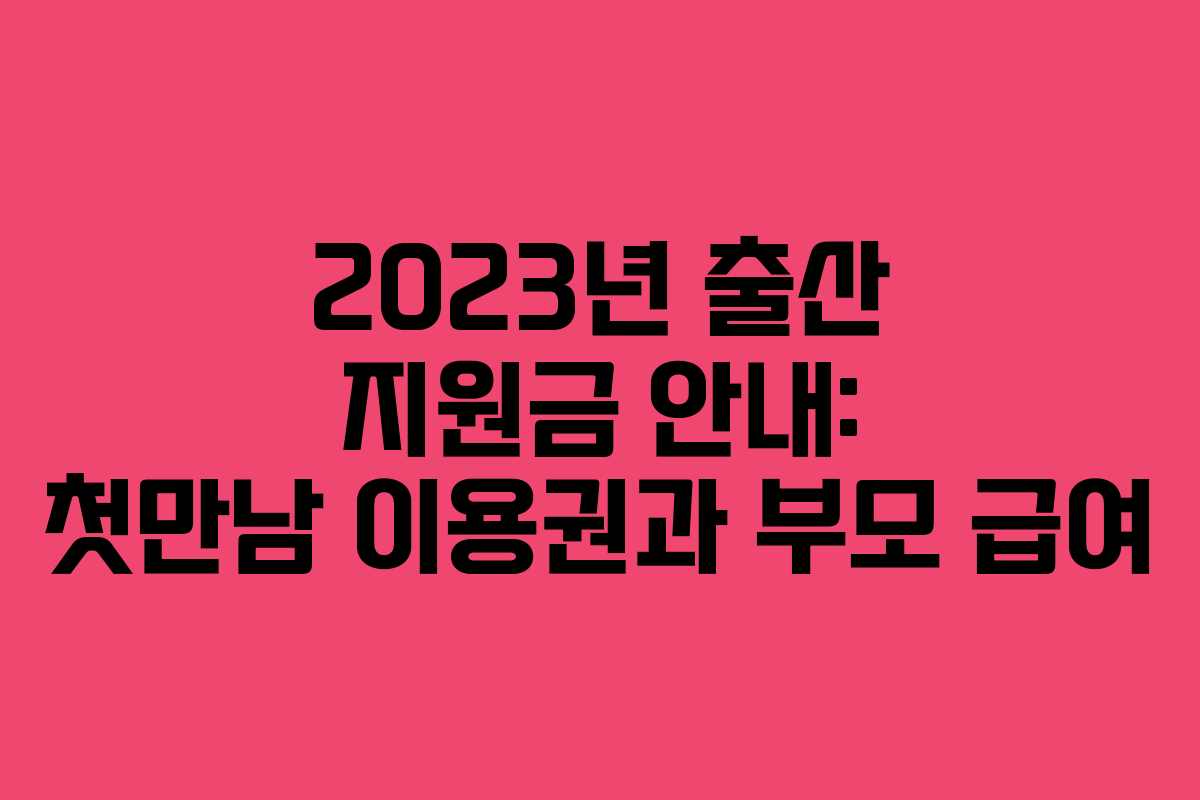 2023년에는 출산을 장려하기 위해 정부에서 다양한 지원 정책을 시행하고 있습니다. 특히 첫만남 이용권과 부모 급여는 신혼부부와 부모에게 큰 도움이 될 것입니다. 이번 글에서는 이 두 가지 지원 제도를 상세히 살펴보겠습니다.
