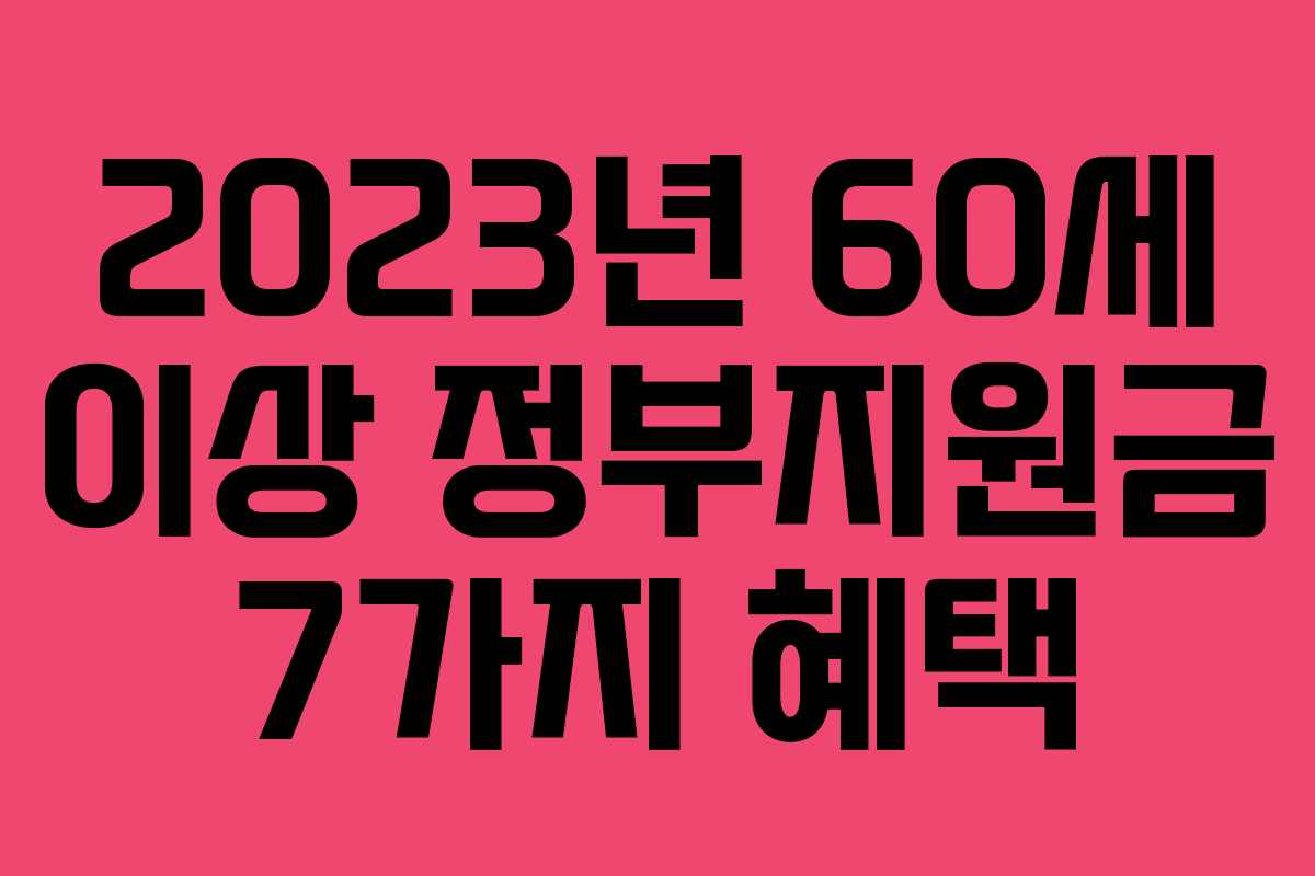 60세 이상이 되면 다양한 정부 지원 혜택을 통해 생활의 질을 높일 수 있습니다. 2023년에는 특히 주목할 만한 7가지 혜택이 마련되어 있으니, 자격 조건을 확인하고 적극적으로 활용하시기 바랍니다.