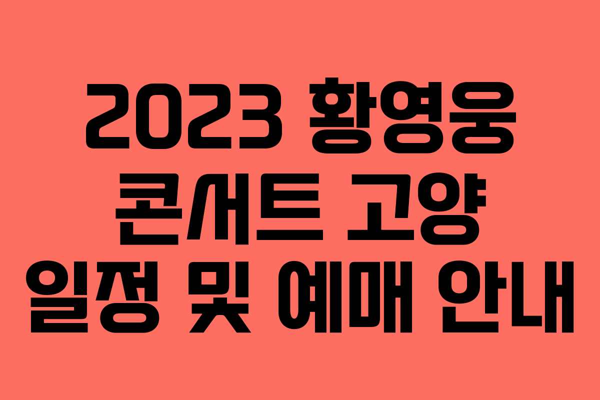 2023 황영웅 콘서트 고양 일정 및 예매 안내