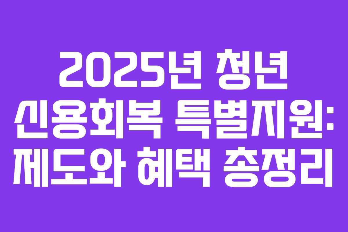 2025년 청년 신용회복 특별지원: 제도와 혜택 총정리