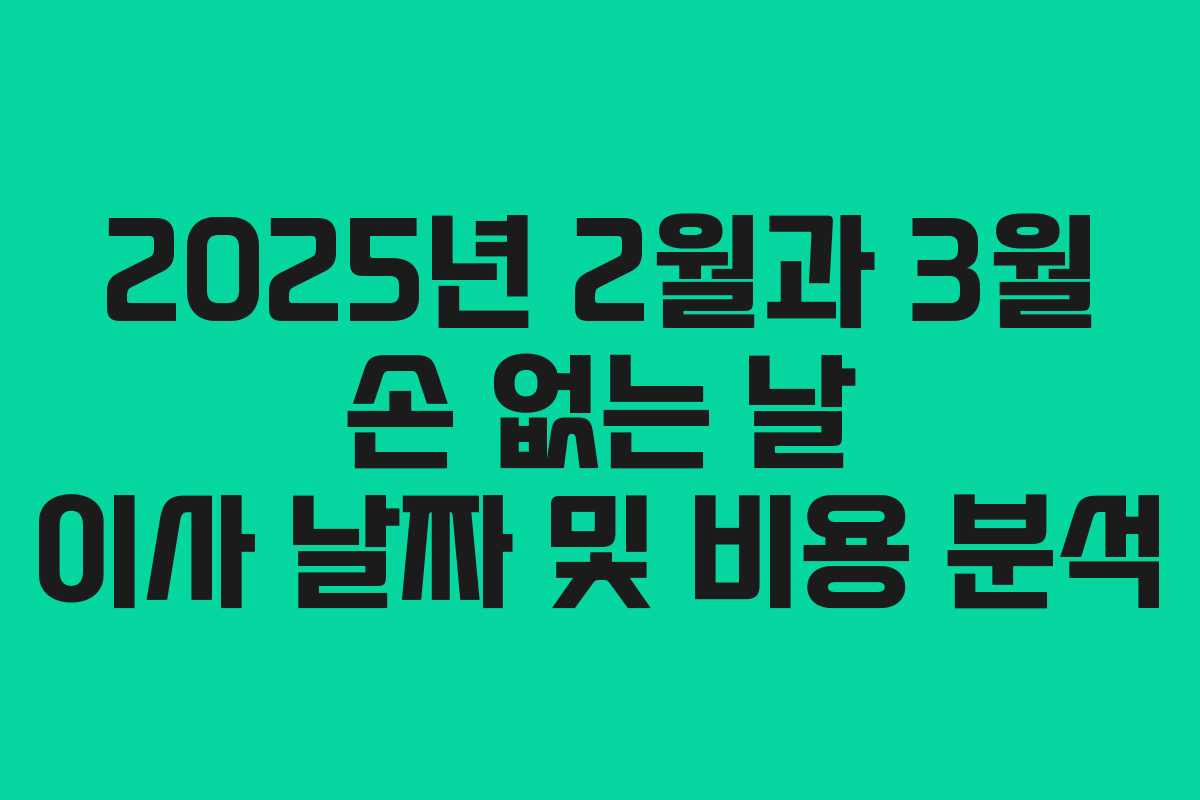 2025년 2월과 3월에 이사 계획을 세우고 있는 분들을 위해 손 없는 날의 의미와 적절한 이사 날짜, 그리고 이에 따른 비용 분석을 상세히 안내합니다.