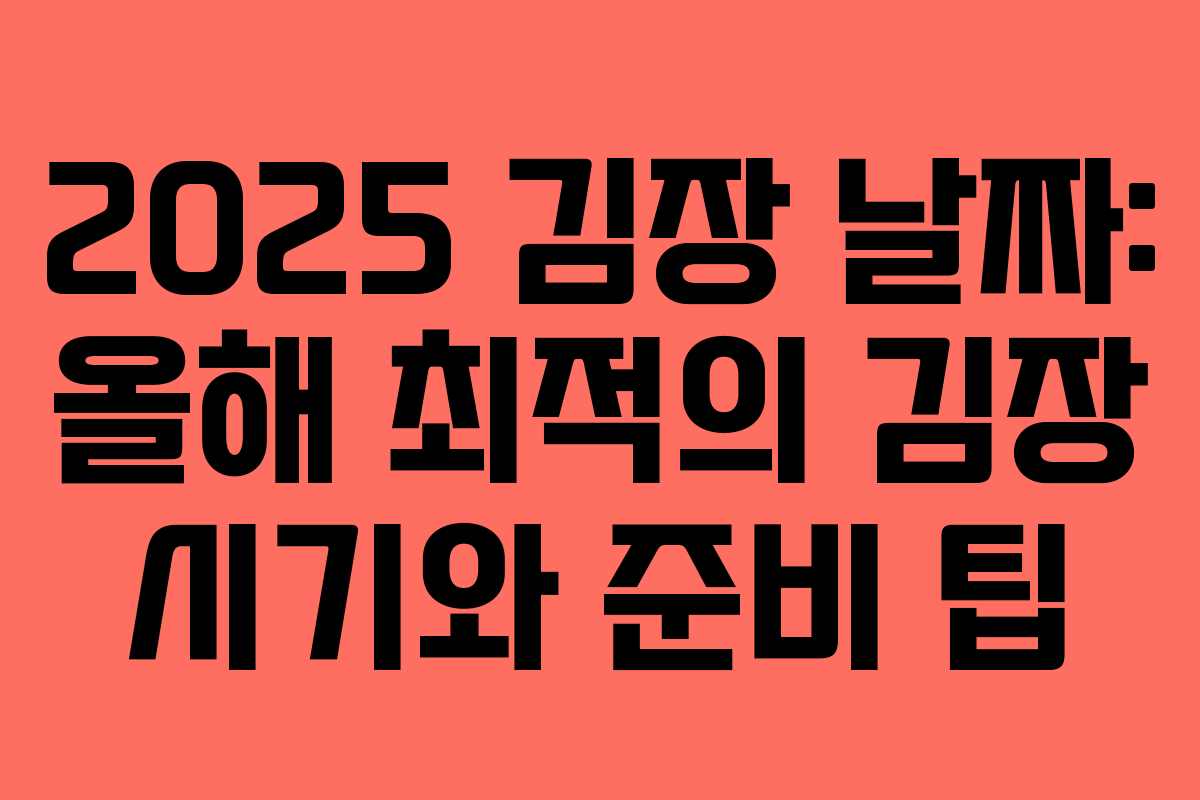 2025 김장 날짜: 올해 최적의 김장 시기와 준비 팁