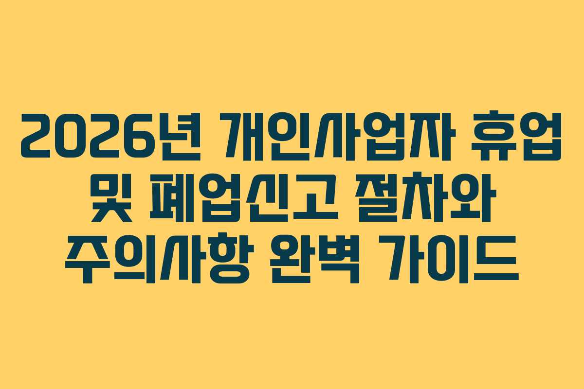 2026년을 맞아 많은 개인사업자와 소상공인이 사업 운영에 대한 결정을 내려야 하는 시점에 있습니다. 특히 경제적 여건이 어려운 가운데, 휴업이나 폐업을 고민하는 경우가 많습니다. 이번 글에서는 이러한 상황에 대비해 휴업 및 폐업신고의 중요성과 구체적인 절차, 주의사항을 상세히 알아보겠습니다.