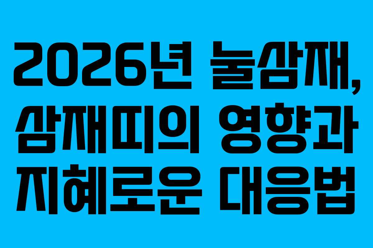 2026년은 삼재가 본격화되는 해로, 많은 사람들이 자신의 띠에 따라 영향을 받을 수 있습니다. 삼재에 대한 믿음이 강한 만큼, 이 시기를 어떻게 지혜롭게 보낼 수 있을지 알아보겠습니다.