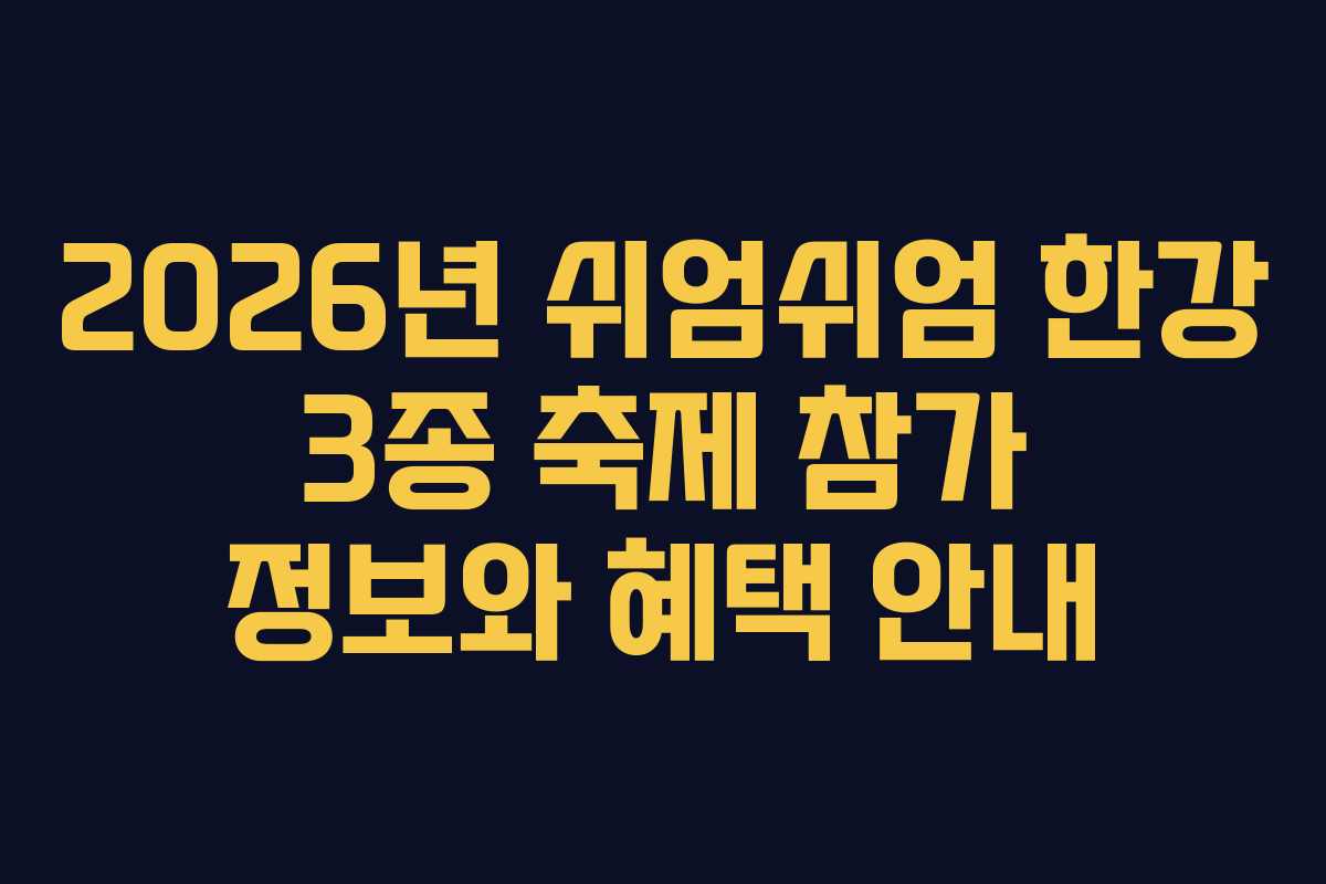 2026년 쉬엄쉬엄 한강 3종 축제는 건강과 즐거움을 동시에 제공하는 특별한 행사입니다. 다양한 프로그램과 혜택이 마련되어 있으니 많은 참여 바랍니다. 한강의 아름다운 풍경 속에서 즐거운 시간을 보내세요.