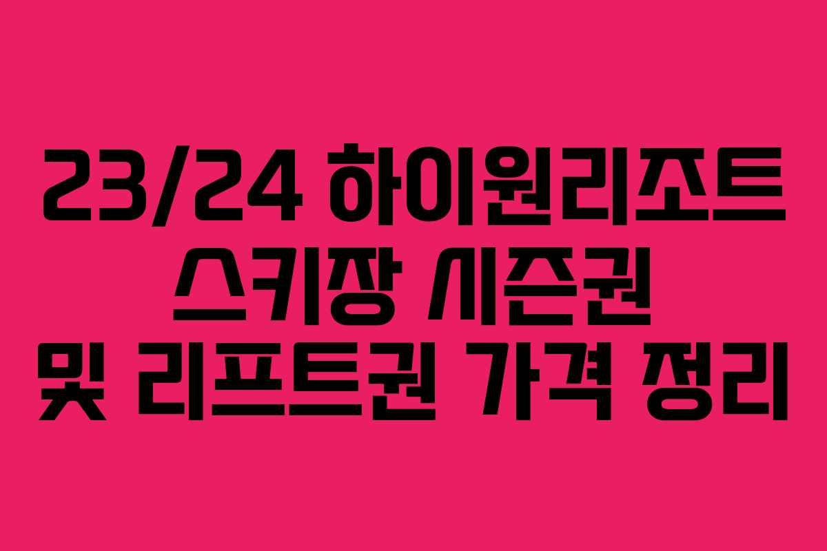 하이원리조트 스키장은 다양한 슬로프와 훌륭한 시설로 많은 스키어들에게 사랑받고 있습니다. 이번 포스팅에서는 2023/2024 시즌의 하이원리조트 스키장 시즌권과 리프트권 가격에 대해 자세히 살펴보겠습니다.