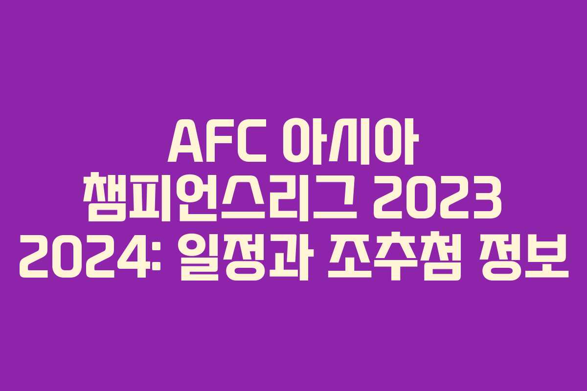 AFC 아시아 챔피언스리그는 아시아 축구 연맹이 주관하는 클럽 축구 대회로, 아시아의 우수한 축구 클럽들이 경쟁하는 자리입니다. 이 글에서는 2023-2024 시즌의 일정, 조추첨 결과, 우승 상금, 그리고 중계 정보를 소개하겠습니다.
