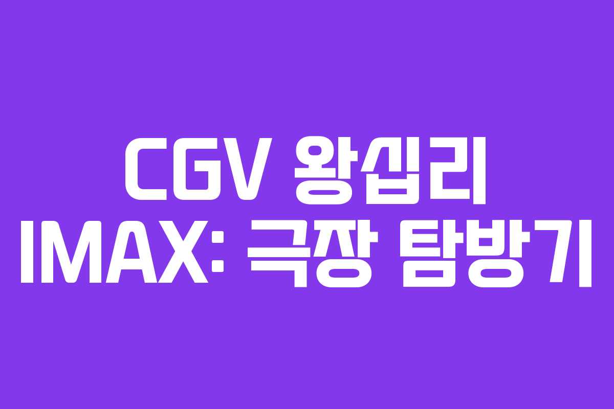 CGV 왕십리 IMAX는 최신 영화와 함께 특별한 관람 경험을 제공하는 극장으로, 영화 팬들에게 추천할 만한 장소입니다.