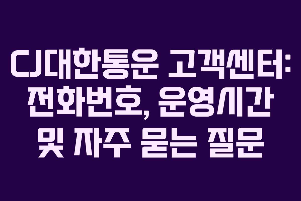 CJ대한통운은 국내에서 많은 사람들이 이용하는 대표적인 택배 회사입니다. 택배 이용 중 문의사항이 있을 경우, 고객센터를 통해 손쉽게 상담 받을 수 있습니다. 다음은 CJ대한통운의 고객센터 전화번호, 운영시간, 자주 묻는 질문(FAQ) 및 택배 배송 조회 방법에 대한 정보입니다.