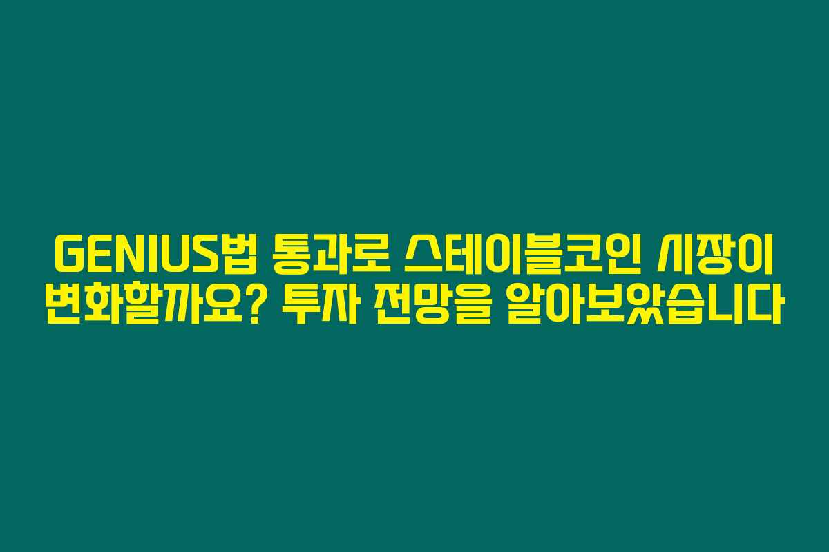 제가 직접 리서치한 바로는 GENIUS법의 통과 이후 스테이블코인 시장이 급격한 변화를 맞이할 것으로 예상됩니다. GLOBAL 금융 시장에서 스테이블코인이 가지는 중요성은 날로 증가하고 있으며, 이는 다양한 투자 기회를 창출할 것으로 보입니다. 아래를 읽어보시면 스테이블코인 투자 전망과 함께 그 매력을 확인할 수 있을 거예요.