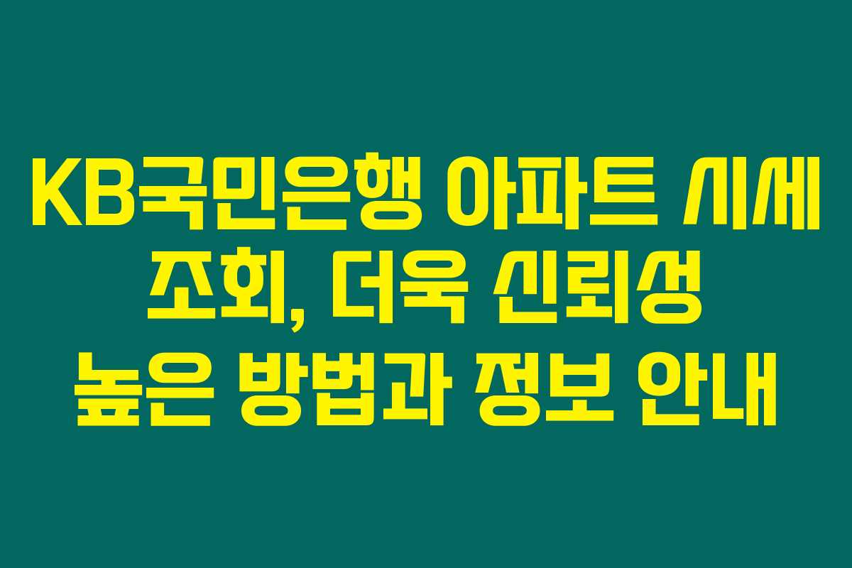 KB국민은행 아파트 시세 조회, 더욱 신뢰성 높은 방법과 정보 안내