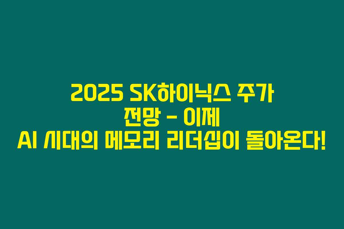 올해 SK하이닉스의 주가를 놓고 고민하는 분들 많으실 거예요. AI 시대가 도래하며 메모리의 중요성이 점점 커지고 있지만, 주식 투자에서 성공하기 위해서는 현명한 판단이 필요합니다. 혹시 2025 SK하이닉스의 주가는 어떻게 될까요? 변동성이 클까요? 아래를 읽어보시면 이러한 질문에 대한 해답을 찾게 되실 거예요.