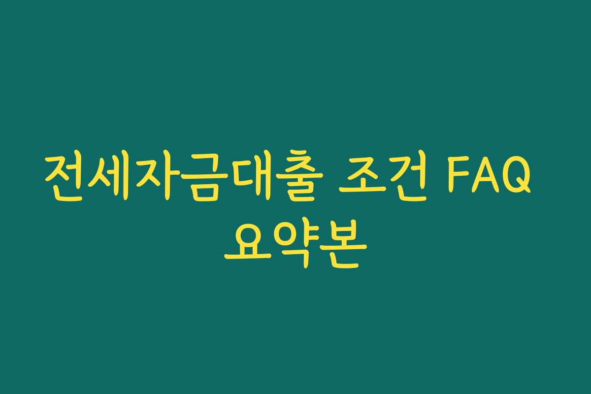 ⚡ 전세자금대출 조건 FAQ 요약본 똑똑하게 해결하는 방법